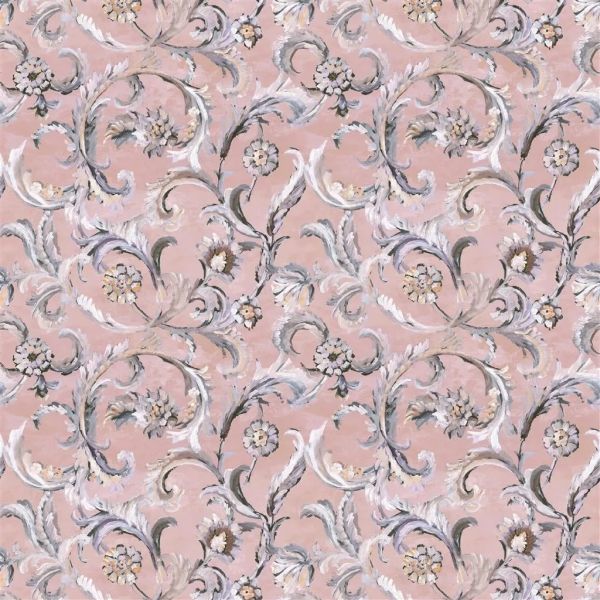 An intricate damask of scrolls and foliage in soft chalky shades. Digitally printed onto a softly slubbed pure cotton in three colourways.