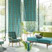 A striking square based multi layered tartan check in a variety of colour combinations from neutral to vibrant. All featuring a graphic over check to enhance the graphic form. Printed on luxurious cotton rich velvet for stunning upholstery curtains blinds cushions and bedcovers in five stunning colourways.