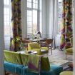 A modern and graphic abstract print with rich organic tones of colour. This striking design is digitally printed onto a scoured linen union blend and is the perfect design for curtains, blinds, cushions, bedcovers and upholstery.