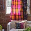 This shimmering pure silk grand scale check is a celebration of a DG classic . Inspired by traditional silk weaving but brought up to date, woven on automated looms in India. A touch of glamour in an instant – in three seductive colours. Varanasi is perfect for lined curtains and cushions.