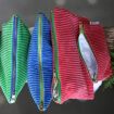 A new practical pouch style bag with feature metallic zip. In pure cotton corda corduroy in bright cobalt blue. Finished with a waterproof lining.