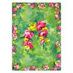 Striking garlands of painterly blooms in vibrant pinks and yellow are set on an expressive bed of green shades.