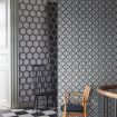 A refined graphic wallpaper design with undulating and metallic linear dashes and interlocking angles. In a cool colour palette of six contemporary shades, this stylish wallpaper is surface printed onto a smooth non-woven wallpaper for ease of hanging.