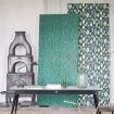 A highly ornate and focused study of vibrant leaves with incredible flashes of colour. This striking wallpaper features delicate dapples and textural elements in the ground and is printed onto a smooth non-woven ground for ease of hanging. Available in five extraordinary colourways.