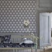 This small scale wallpaper design utilises linear dashes and geometric angles to glamorous effect.