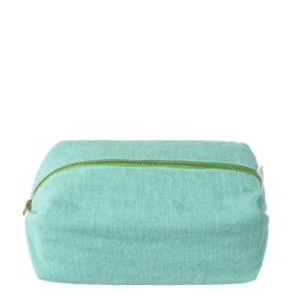A stylish minimalist washed linen washbag in our best selling Brera Lino fabric in emerald. This large box style washbag has a contrasting zip waterproof lining and an interior pocket.
