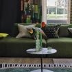 Add a touch of luxury and glamour to your interior setting with this stylish large square velvet cushion in fern green. This contemporary geometric cut pile velvet pattern is highlighted by the smart flat weave of the ground. Reversing to Varese velvet in fir and finished with an elegant trim on two sides in Mirissa Natural.