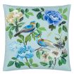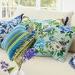 This large square decorative floral cushion features elegant painterly studies of flowers and birds digitally printed onto a cotton canvas and embellished with exquisite embroidered details. Reversing to a digitally printed butterfly floral scene this stylish floral cushion in shades of cobalt blue will make a stunning statement in your interior scheme.