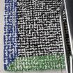 This hand tufted rug features an all-over black and white looped pile using chunky New Zealand wool - combined with a contrasting border in vivid emerald green and cobalt blue.