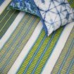 The perfect rug for inside and out - a dynamic striped outdoor rug inspired by vintage hand woven rugs. In gorgeous tones of cobalt blue, emerald and soft white, this durable and easy to clean handloom woven flat weave outdoor rug is constructed from a specialist polyester yarn made from up to 875 recycled plastic bottles. In a new smaller size, medium and runner.