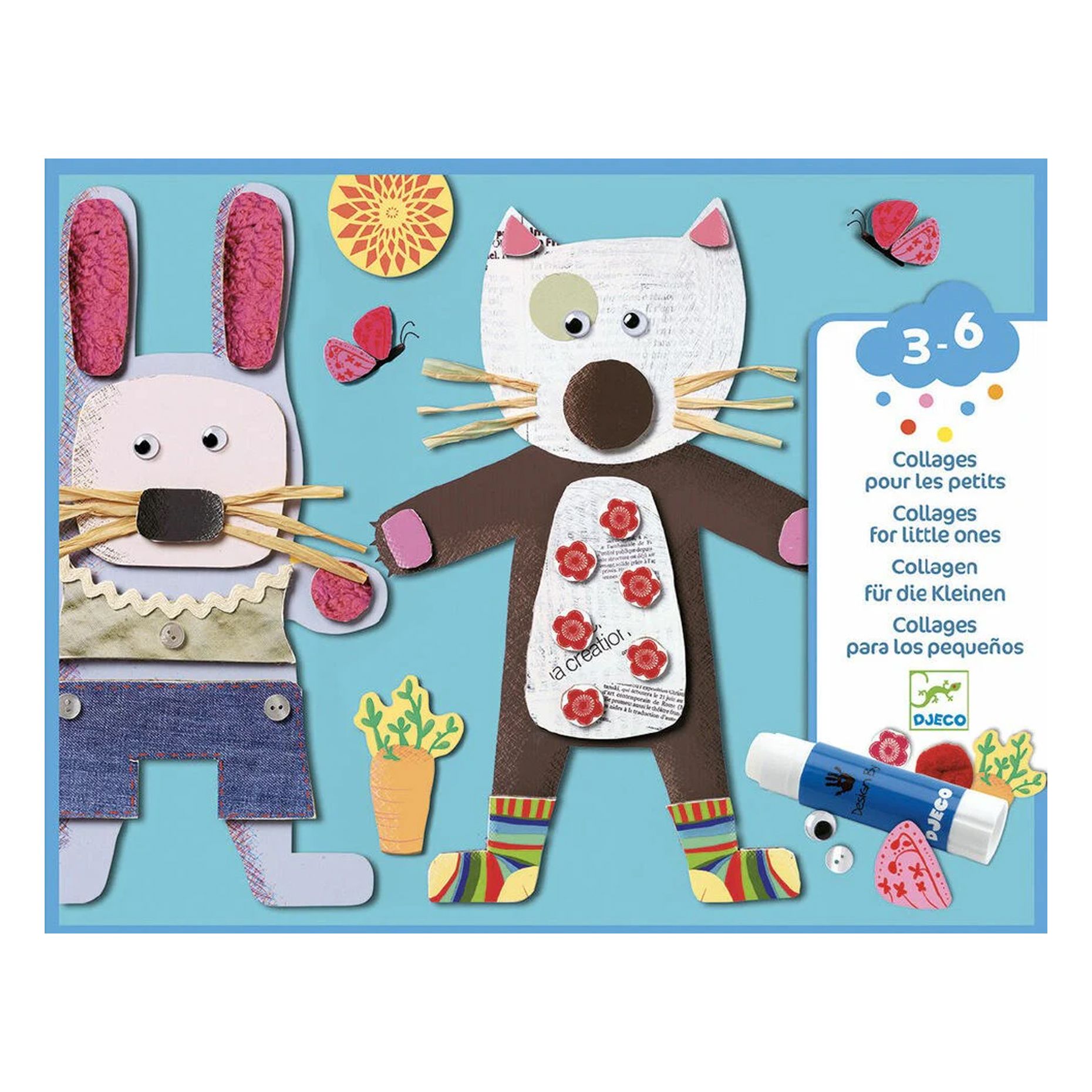 Large corrugated cardboard pieces and fun accessories for tiny hands to create four simple touching pictures.