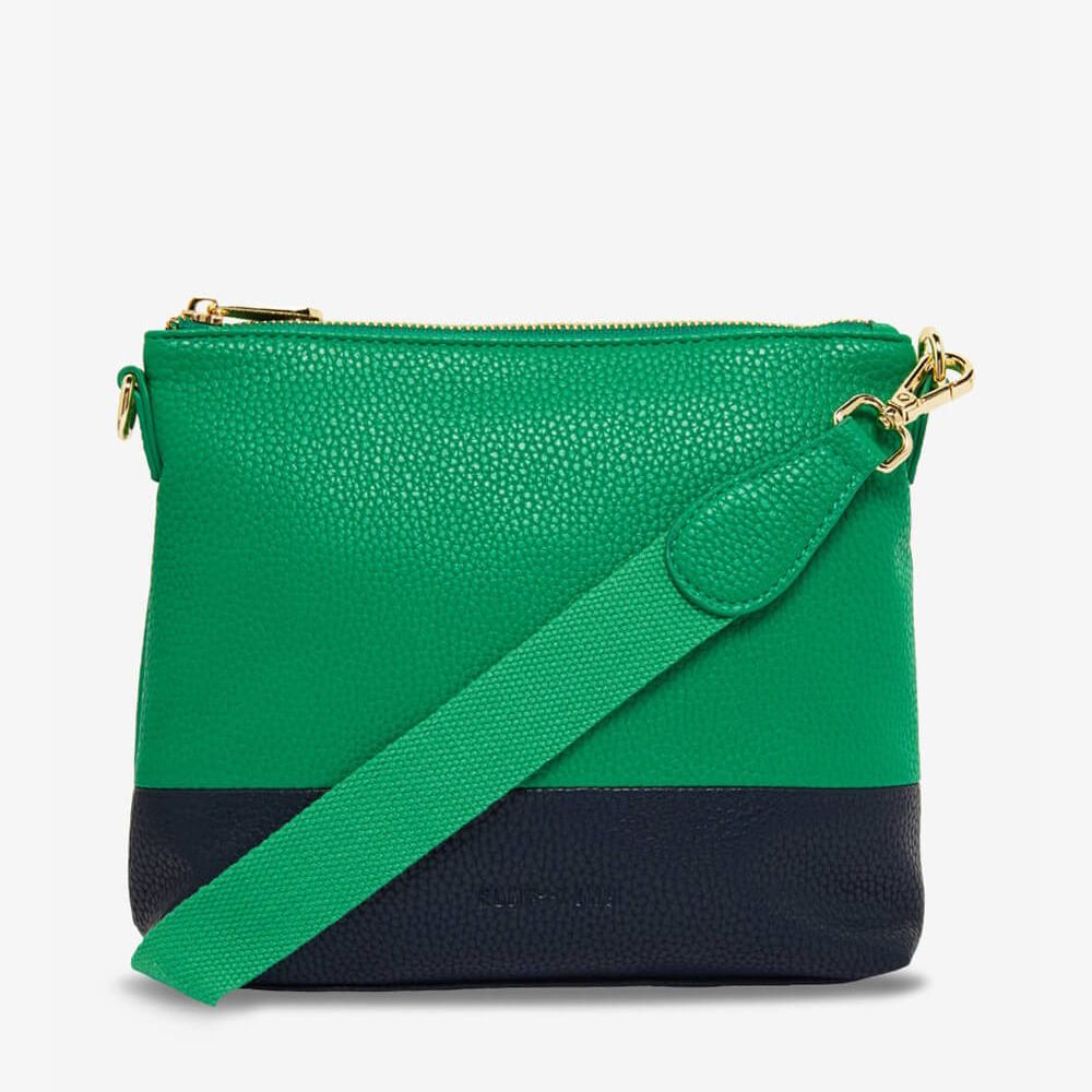 The Elms+King Avoca Crossbody is made from premium polyurethane and features blue & white gingham cotton lining.