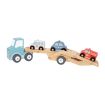 Little drivers will love the Hi Pando Wooden Car Carrier, a beautifully crafted transporter truck designed to spark imaginative play and hands‑on learning. Featuring a light blue cab and a smooth natural‑wood trailer, this charming vehicle set brings endless excitement to young transport enthusiasts. The two‑level trailer includes three colourful wooden cars—a bold red fire truck, a crisp white ambulance, and a bright blue police car—each decorated with playful details.