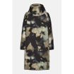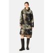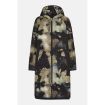 A quilted, soft coat in a clean silhouette, crafted in a vegetal-toned all-over print. Designed with a softly shaped hood, welt pockets, and a YKK two-way zipper at the center front. Finished with a rounded bottom hem, side slits with push buttons, and a slightly longer back hem.