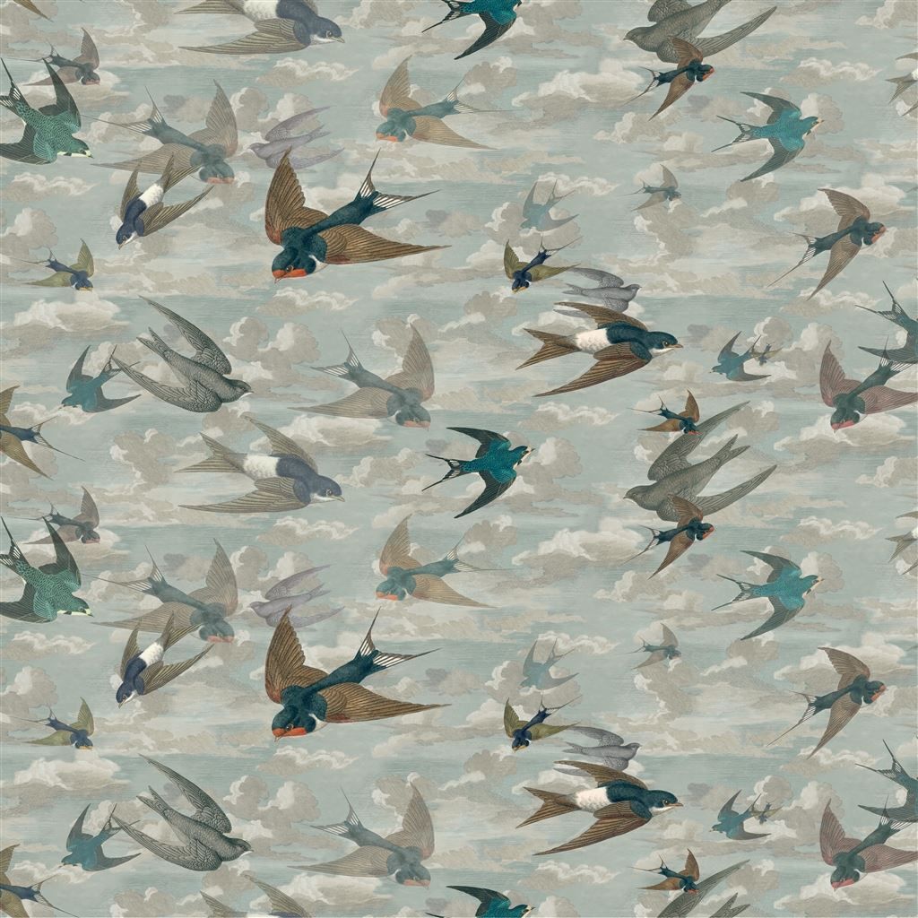Composed skies and swooping swallows pair gracefully in this tranquil scene. With wonderful hand drawn detailing, this joyful design is digitally printed onto a soft cotton ground and is perfect for many interior uses. Including curtains, blinds, cushions, bedcovers and upholstery. Available in one beautiful colourway.