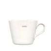 From Keith’s Word Range, this bucket mug blends modern with retro in an effortlessly simple style. The words “aroha” have been hand-stamped and coloured. Aroha means love in Maori.