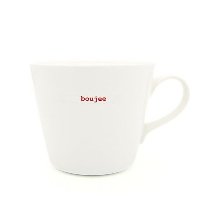 From Keith’s Word Range, this bucket mug blends modern with retro in an effortlessly simple style. The words “Boujee” have been hand-stamped and coloured.
