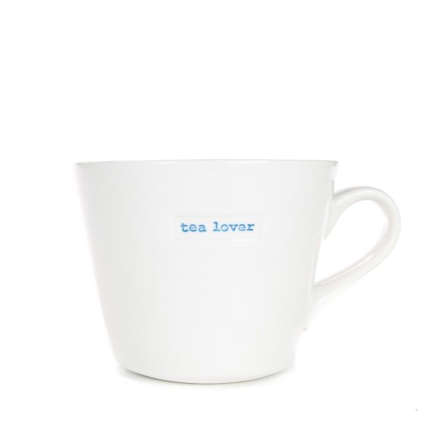 Designed by Keith Brymer Jones to be practical in the home and pleasing to the eye, this simple yet stylish bucket mug is perfectly formed from super white porcelain and hand stamped with the word ‘tea lover’.