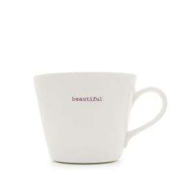 Designed by Keith Brymer Jones to be practical in the home and pleasing to the eye, this simple yet stylish bucket mug is perfectly formed from super white porcelain and hand stamped with the words ' Wahine Toa' which means in Maori female warrior, or strong or brave woman.