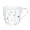 The mug stands out with its simple yet elegant black-and-white design, showcasing various animals such as birds, dogs, and fish. This design makes it a perfect companion for everyday use or a special gift for art enthusiasts.