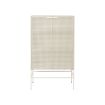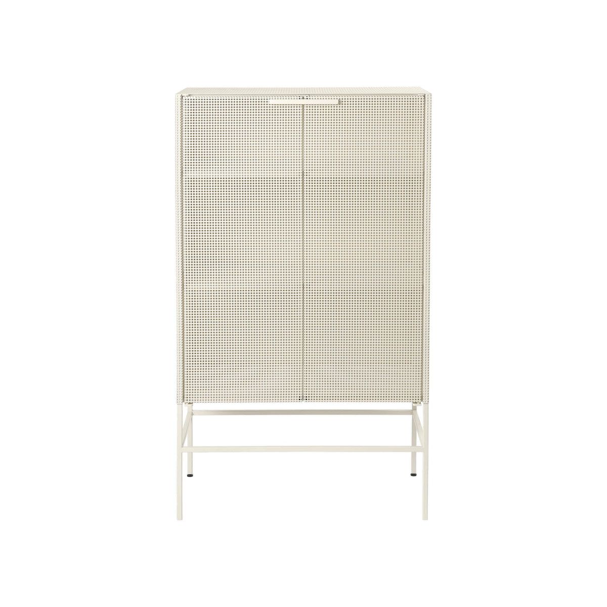 This classic stationery cabinet comes with three perforated steel shelves. The cabinet doors swing outwards from the center when opened and are closed with a strong magnetic lock. Made from a beautiful and intriguing black perforated powder coated steel, The Grid Cabinet leaves a minimal yet striking appearance. The Grid Cabinets is perfect for storing books, objects, sculptures, glasswear or crockery and the see-through aspect keeps the cupboard looking light whilst allowing a glimpse of the pieces that are stored inside. The Grid Cabinet in Black is an ideal storage solution for the modern-day home. A really chic designer Cabinet with a typically Danish designed approach - clear graphic lines; a no-nonsense design. The Grid Cabinet is also available in a beige version that makes the large storage furniture appear even lighter.