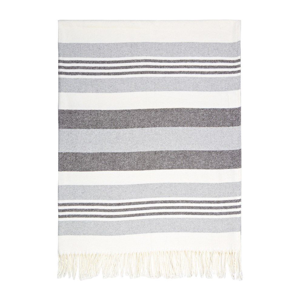 Featuring an understated stripe and a serene colourway this throw is irresistibly soft and the perfect layering piece.