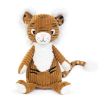 Les Déglingos is a family of crazy, funky animals with their own quirky language! Made of corduroy, burlap and very trendy patterns, they will be perfect for decorating your little ones' bedrooms! This brown sugar-colored plush toy is ultra soft and easy to grab in all directions! This little tiger is delicious!