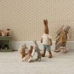 With this babysitter, it is easy to put your little friends to sleep. The base is made of metal and covered by the most lovely fabric. The chair fits MY sized rabbits and baby mice perfectly.