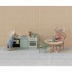 The small kitchen counter comes with 2 cups and 2 plates, a pot and a pitcher and a small can. The small sink is made of metal to look as real as possible. It fits perfectly into the kitchen in the SuitCasa mouse house.