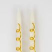 - 2 Ivory candles with a hand-painted gold ink swirl relief design