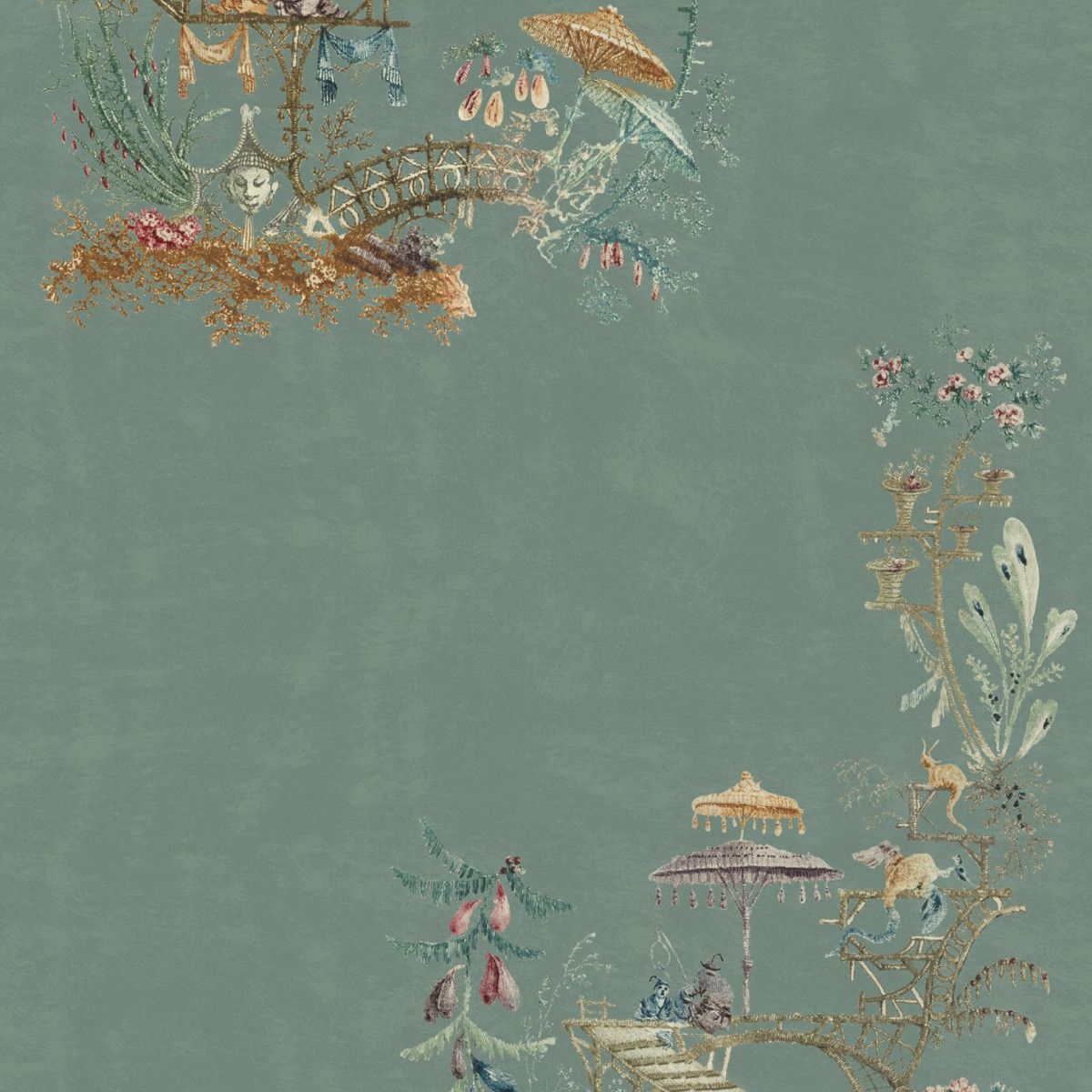 A very delicate and classy wallpaper design featuring some French style Chinoiserie hand drawings made by Jean Pillement at the end of 18th century. Available in two colour options: blue and coconut white.