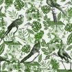 A statement aviary wallpaper with large scale parrots and foliage illustration recreating the look of a royal large bird cage. A wallpaper designed on 3 rolls for maximising the pattern repetition. Available in 3 colour options - Green, Indigo and Dark. The design is printed over 3 panels each 52cm x 3.0m.