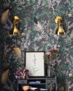 A wallpaper masterpiece design with stunning birds of Paradise illustrated on a idyllic background full of blooming branches. A rich coloured design with beautiful details made on 3 rolls. Available on two different colour options - Green Sheen and Grey. The design is printed over 3 panels each 52cm x 3.0m.