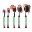 For best use, try the large of the oval brushes to blend liquid foundation over the skin from the inside of your face outwards, the bristles work their magic and create a smooth and even texture. The medium oval shape is perfect for buffing out foundation or powders along the jawline for a seamless look. The smaller oval shape is amazing at blending blusher on the cheeks to highlight cheekbones. The mini slim oval brush is a dream at working product along the eyebrow line and for applying product along the nose. The small round brush is our emergency touch-up brush, perfect for fixing detailed areas or covering spots or small marks.