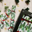 An exquisite set of 8 x 12″ Deluxe Crackers, adorned with a charming green tree design and accented with festive red ties. Each cracker promises a delightful experience, as it contains a unique and varied assortment of gifts, ensuring that every pull is a surprise.