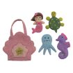 Tell stories and play games with this clam shell play bag featuring finger puppets of a mermaid and her sea creature friends.