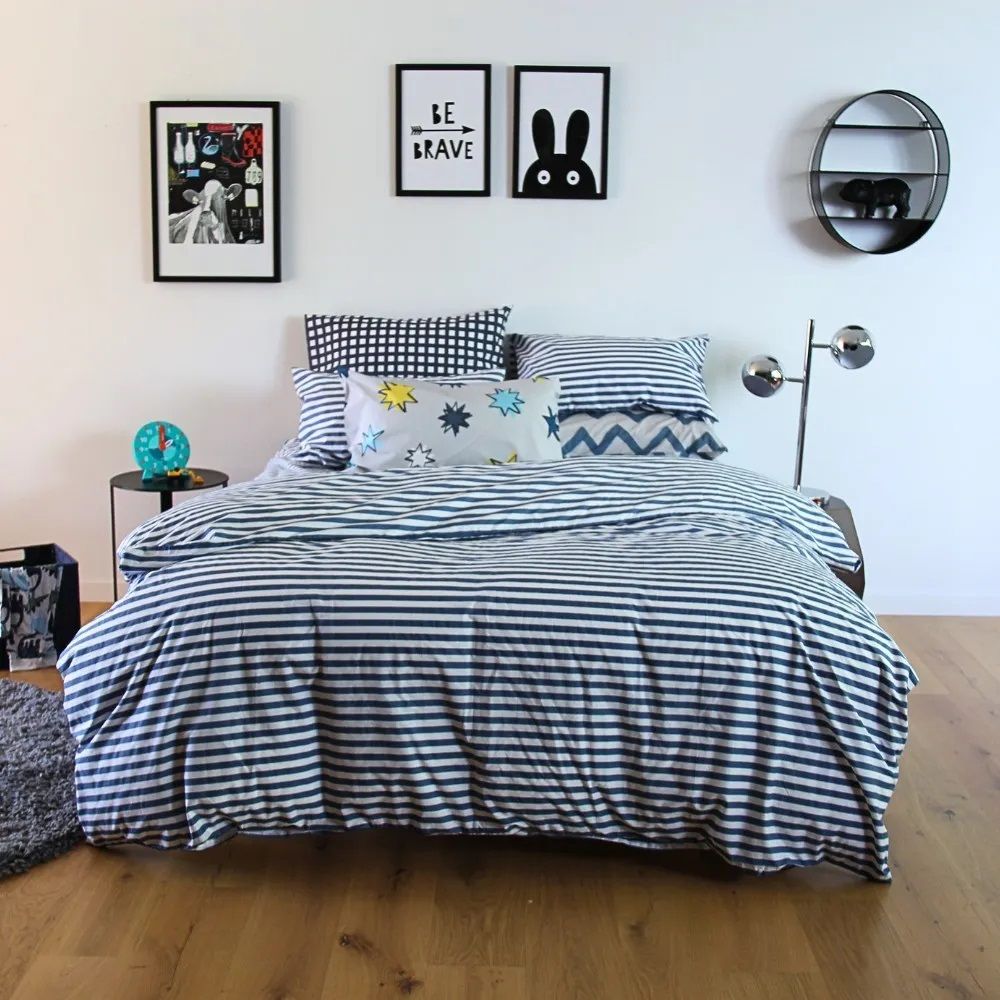 The Moonlight blue and white stripe doona cover set is available in single, king single, queen & king bedding sizes