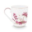 A small mug from the Pip Studio pink Jolie collection. This beautiful mug features a white background subtly adorned with fine golden dots, plants, and elegant flowers. Perfect for brightening up your tableware. The handle of the mug is decorated with elegant pink details.
