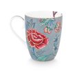 The mug has a blue background and is decorated with the elegant Flower Festival design. This rich floral pattern features a variety of fanciful red and pink chintz flowers with light blue and green leaves. The playfully positioned flower branches with elaborately decorated flowers and leaves give this elegant design an extra luxurious look and feel. Our Flower Festival porcelain will make your china cabinet and table shine.
