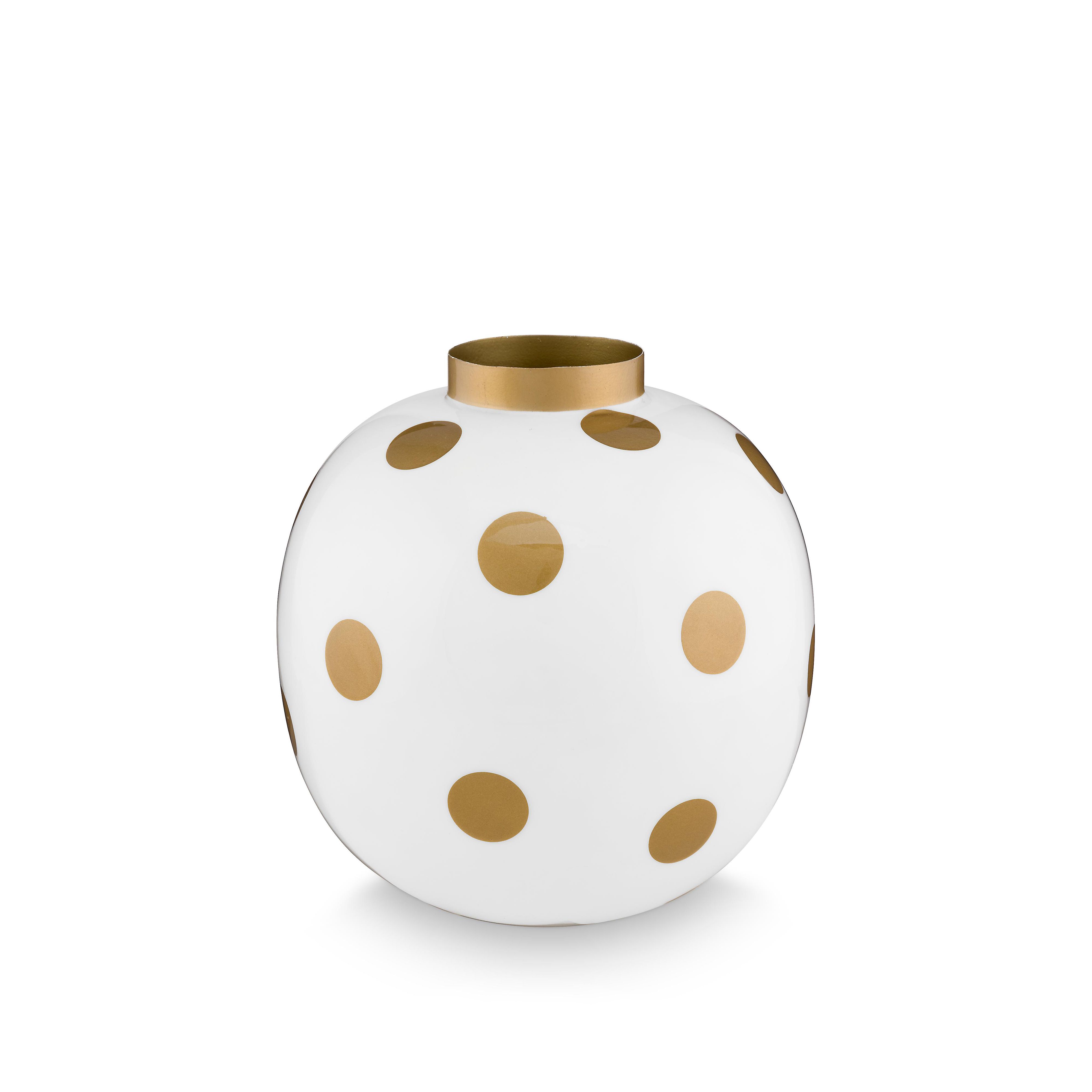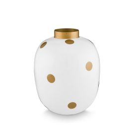 Decorate your home festively with this white/gold metal vase. The extra large gold dots make the vase a real eye-catcher. This vase makes any bouquet look stunning.