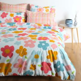 The Florence pink & stripe pillowcase pair is a chorus of colour and summer sun. Florence has multi coloured criss cross stripes on a soft melon pink fabric.