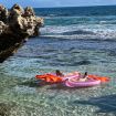 Float to paradise looking as cool as ever with the Strawberry Luxe Lie-On Float. It is fun, vibrant and summer loving, perfect for poolside and seaside floating.