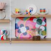 The eye-catcher in the kitchen: colourful trays with a printed glossy coating.