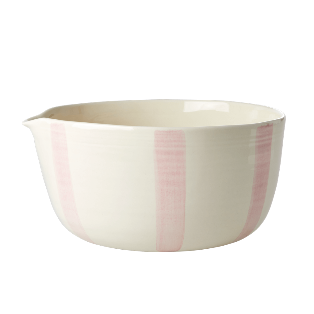 Lovely and practical salad bowl which is perfect for many occasions. It's made of ceramic and is designed with a lovely creme color with pink stripes. Practical and perfect at the same time.