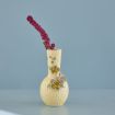 The most beautiful cream-colored vase with a unique flower sculpture and an elegant pattern.