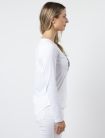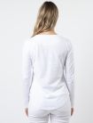 Relaxed fit crew neck long sleeved t-shirt with a longer scoop back hemline.