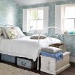 A flock of seagulls on the look-out for supper, and inspired by a printed fabric from the archive, are painted in fresh ocean colourways. A beautiful sky scene for dreamy bedrooms and airy open plan spaces.