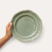 Set the table for a really nice party with a beautiful plate. Mix colours, match the plate with the same glaze or choose another exciting shade. The decorative ornate pattern draws itself so beautifully in the ceramic. The plate works on its own as a small plate when you want to serve something small. It also looks stunning when set on carpet plates from the same collection. Setting the table with layer upon layer - plate upon plate - feels generous and luxurious. Here we see Sthål's plate in antique green. An effect glaze that just gives nice decorative crackles and with its runny texture creates decorative colour shifts.