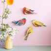Garden birds chirp around us, pecking at some crumbs, glancing around, then fluttering away. They add colour to our daily lives. These cardboard birds won’t fly away and can be given a lovely spot on your wall.