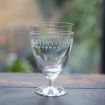 A bistro style glass with a delicate, hand-engraved oval motif.